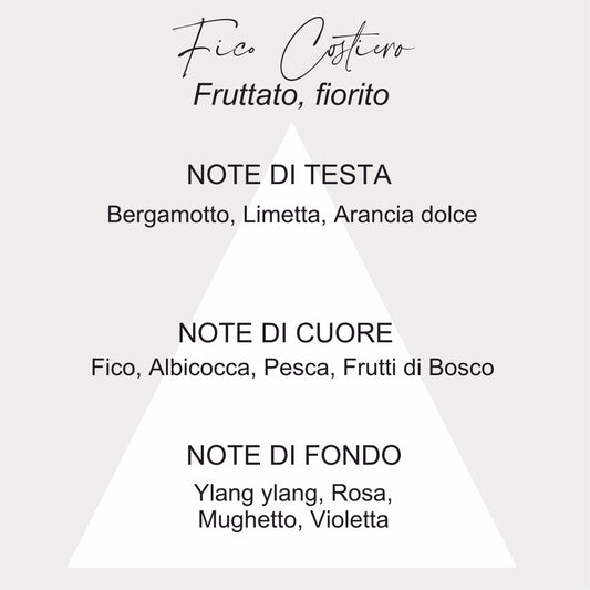 Non c'è avventura che non porti con sé un ricordo indelebile, e nella fragranza Fico Costiero, sono le note di fondo a sigillare l'esperienza olfattiva: ylang ylang, rosa, mughetto e violetta. Queste essenze, delicate ma persistenti, avvolgono la stanza con un velo di mistero e femminilità, come il tramonto che colora il cielo di tonalità impossibili. È il momento in cui il giorno incontra la notte, e la natura si prepara a svelare i suoi segreti più intimi.